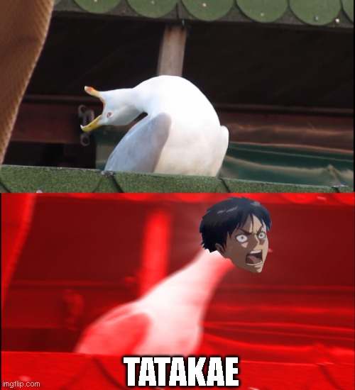 Tatakae meme.. | Eren as a bird🕊️, Wait the minute.. Eren is a bird 🕊️??. If you find this site serviceableness, please support us by sharing this posts to your preference social media accounts like Facebook, Instagram and so on or you can also Get this blog page with the title Tatakae Meme Eren by using Ctrl + D for devices a laptop with a Windows operating system or Command + D for laptops with an Apple operating system. If you use a smartphone, you can also use the drawer menu of the browser you are using. Whether it's a Windows, Mac, iOS or Android operating system, you will still be able to bookmark this page.